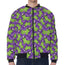 Hemp Leaf Pattern Print Zip Sleeve Bomber Jacket