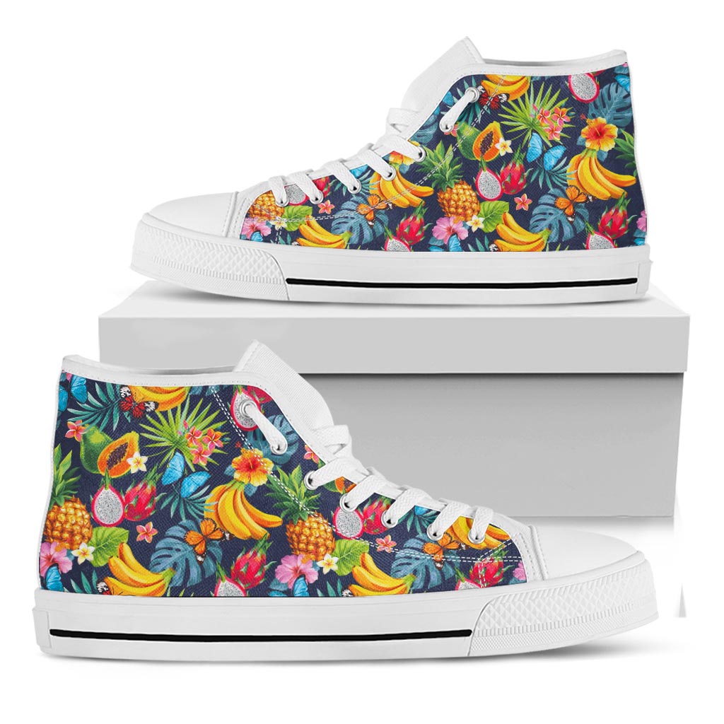 Are you looking for unique sneakers? Check our Aloha Tropical Fruits Pattern Print White High Top Sneakers on GearFrost. Our sneakers are handcrafted to the highest quality standards and made-to-order for you!