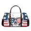 Vintage Grunge American Flag Patriotic Leather Tote Bag With Zipper