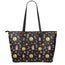 Black Sunflower Pattern Print Leather Tote Bag With Zipper