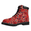 Armistice Day Poppy Pattern Print Padded Collar Lace Up Boots