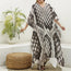 Beige Snakeskin Print Silk V-Neck Kaftan Dress