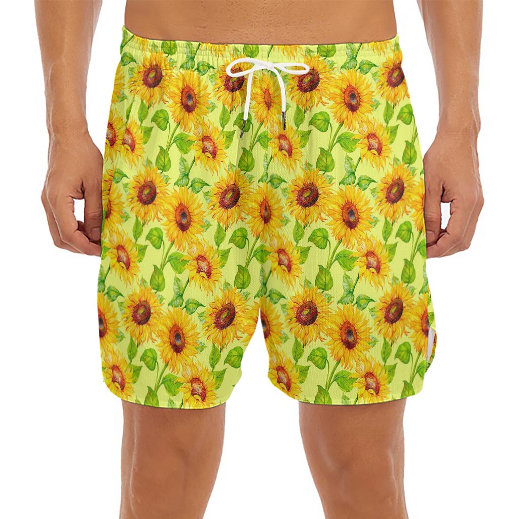 Are you looking for unique split running shorts? Check our Beige Watercolor Sunflower Pattern Print Men's Split Running Shorts on GearFrost. Our running shorts are handcrafted to the highest quality standards and made-to-order for you!