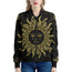 Make a bold statement with the sleek and stylish Black And Gold Celestial Sun Print Women's Bomber Jacket. This women's bomber jacket combines a classic silhouette with modern design, offering the perfect mix of fashion and functionality. Whether you're layering it for a chilly day or adding a finishing touch to your outfit, this jacket is designed to keep you comfortable while elevating your style.