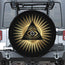 USE THE TIRE COVER SIZE CALCULATORAre you looking for unique tire covers? Check our Black And Gold Eye of Providence Print Tire Cover With Camera Hole on GearFrost. Our tire covers are handcrafted to the highest quality standards and made-to-order for you!