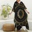 Black And Gold Mandala Print Silk V-Neck Kaftan Dress