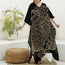 Black And Gold Sea Turtle Print Silk V-Neck Kaftan Dress
