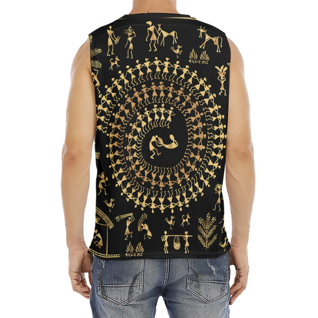 Are you looking for unique fitness tank tops? Check our Black And Gold Warli Tribal Print Men's Fitness Tank Top on GearFrost. Our tank tops are handcrafted to the highest quality standards and made-to-order for you!