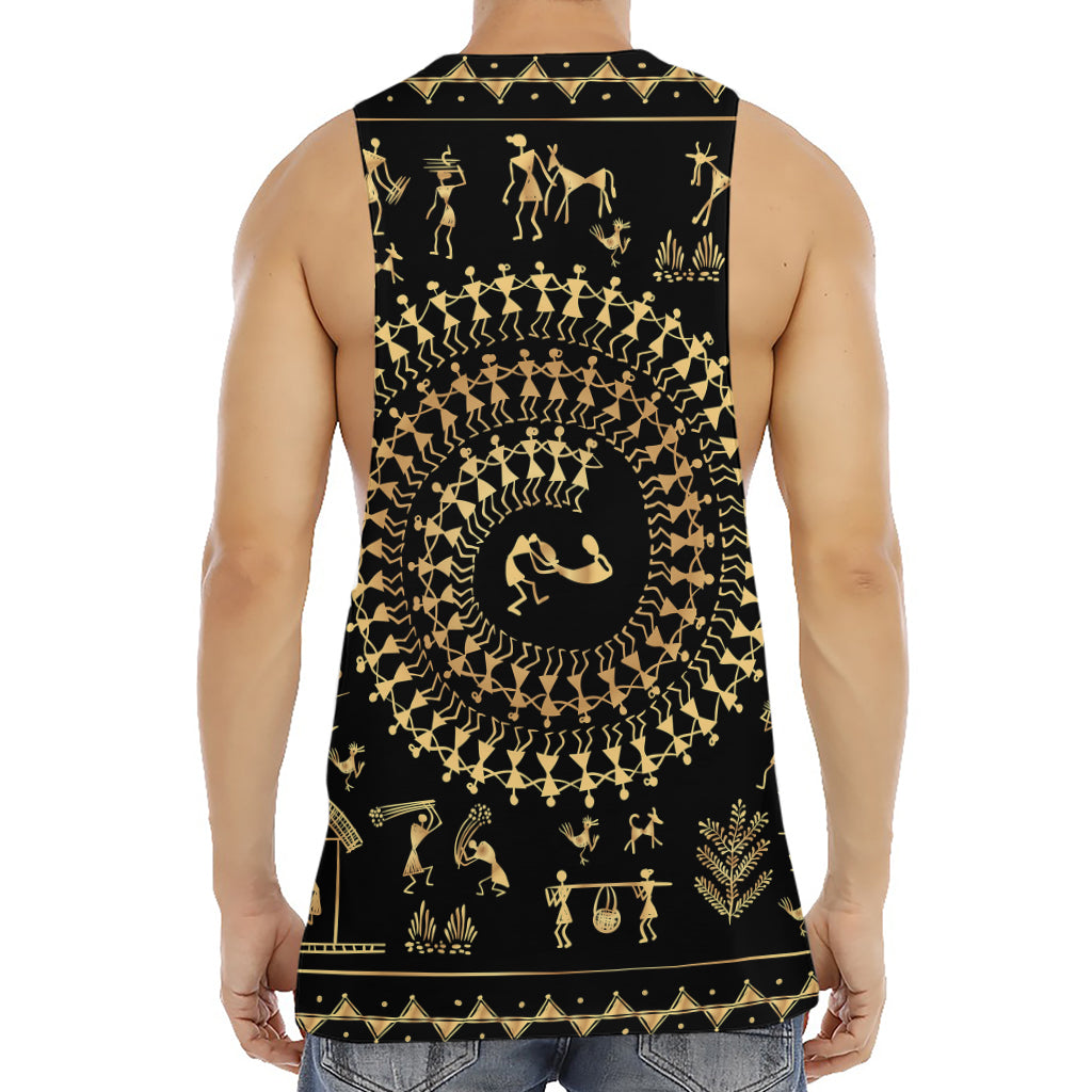 Are you looking for unique muscle tank tops? Check our Black And Gold Warli Tribal Print Men's Muscle Tank Top on GearFrost. Our tank tops are handcrafted to the highest quality standards and made-to-order for you!