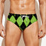 Are you looking for unique men's swim briefs? Check our Black And Green Argyle Pattern Print Men's Swim Briefs on GearFrost. Our swim briefs are handcrafted to the highest quality standards and made-to-order for you!