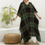 Black And Green Stewart Tartan Print Silk V-Neck Kaftan Dress
