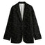 The button closure and side pockets add both style and practicality, providing secure storage for small essentials like keys or a phone. Whether you’re in a professional setting or enjoying a night out, these features make the blazer as functional as it is fashionable. The stitching, available in black or white, is thoughtfully matched to the design, ensuring a polished and cohesive look.
