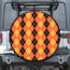 USE THE TIRE COVER SIZE CALCULATORAre you looking for unique tire covers? Check our Black And Orange Argyle Pattern Print Leather Spare Tire Cover on GearFrost. Our tire covers are handcrafted to the highest quality standards and made-to-order for you!