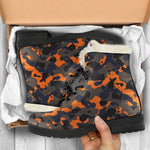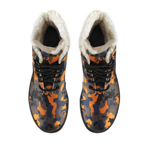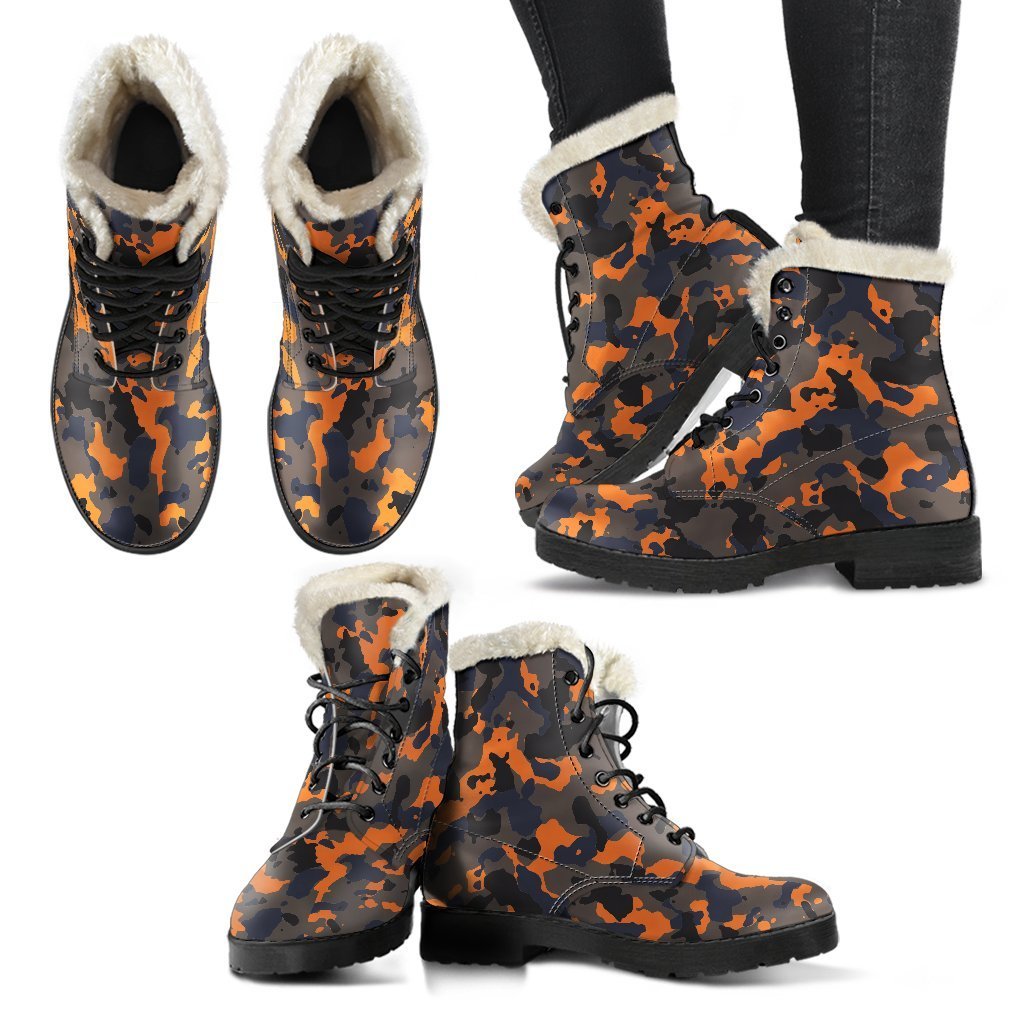 Combine cozy warmth with standout style in the versatile Black And Orange Camouflage Print Faux Fur Leather Boots. Designed to keep you comfortable without compromising on fashion, these faux fur leather boots are a must-have addition to your footwear collection. Whether you’re braving chilly weather or adding an edgy touch to your outfit, these boots offer the perfect mix of practicality and personality.