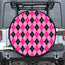 USE THE TIRE COVER SIZE CALCULATORAre you looking for unique tire covers? Check our Black And Pink Argyle Pattern Print Leather Spare Tire Cover on GearFrost. Our tire covers are handcrafted to the highest quality standards and made-to-order for you!