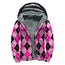 Black And Pink Argyle Pattern Print Sherpa Lined Zip Up Hoodie