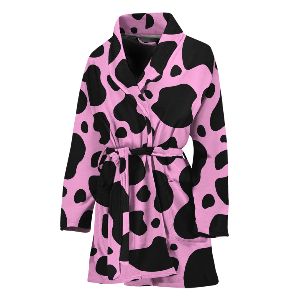 Wrap yourself in luxurious comfort with the elegant Black And Pink Cow Print Women's Bathrobe. This women's bathrobe is the ultimate blend of style, coziness, and practicality, making it an essential addition to your loungewear collection. Whether you’re starting your morning routine or unwinding after a long day, this robe is designed to keep you comfortable and looking effortlessly chic.