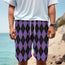 Are you looking for unique cargo shorts? Check our Black And Purple Argyle Pattern Print Men's Cargo Shorts on GearFrost. Our shorts are handcrafted to the highest quality standards and made-to-order for you!