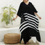 Black And White American Flag Print Silk V-Neck Kaftan Dress