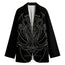 The button closure and side pockets add both style and practicality, providing secure storage for small essentials like keys or a phone. Whether you’re in a professional setting or enjoying a night out, these features make the blazer as functional as it is fashionable. The stitching, available in black or white, is thoughtfully matched to the design, ensuring a polished and cohesive look.