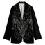 The button closure and side pockets add both style and practicality, providing secure storage for small essentials like keys or a phone. Whether you’re in a professional setting or enjoying a night out, these features make the blazer as functional as it is fashionable. The stitching, available in black or white, is thoughtfully matched to the design, ensuring a polished and cohesive look.