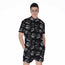 Black Palm Leaf Aloha Pattern Print Men's Short Sleeve Shirt