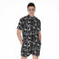 Black Palm Leaf Aloha Pattern Print Men's Short Sleeve Shirt