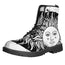 Step out with confidence in the Black And White Celestial Sun Print Lace-Up Boots. Built with a 100% vegan PU leather upper and a durable rubber outsole, these lace-up boots balance everyday comfort with reliable traction—great for daily wear without overpromising performance.