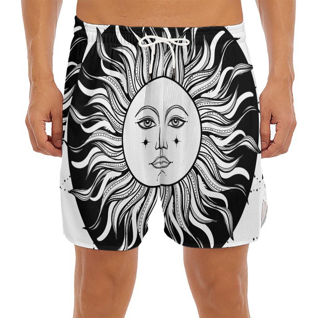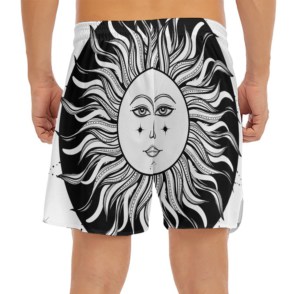 Are you looking for unique split running shorts? Check our Black And White Celestial Sun Print Men's Split Running Shorts on GearFrost. Our running shorts are handcrafted to the highest quality standards and made-to-order for you!