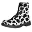 Step out with confidence in the Black And White Cow Print Lace-Up Boots. Built with a 100% vegan PU leather upper and a durable rubber outsole, these lace-up boots balance everyday comfort with reliable traction—great for daily wear without overpromising performance.