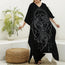 Black And White Gemini Sign Print Silk V-Neck Kaftan Dress