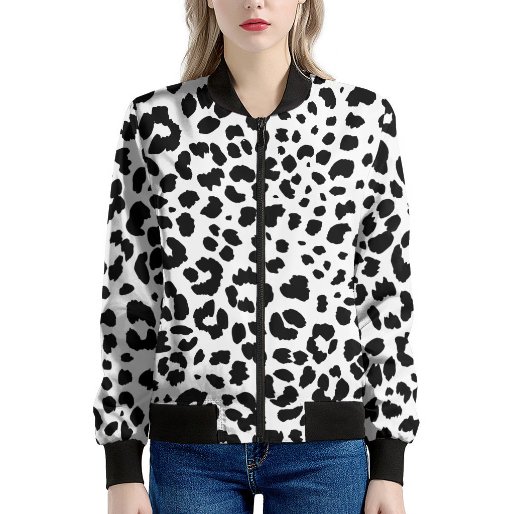 Make a bold statement with the sleek and stylish Black And White Jaguar Pattern Print Women's Bomber Jacket. This women's bomber jacket combines a classic silhouette with modern design, offering the perfect mix of fashion and functionality. Whether you're layering it for a chilly day or adding a finishing touch to your outfit, this jacket is designed to keep you comfortable while elevating your style.