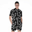Black Palm Leaf Aloha Pattern Print Men's Short Sleeve Shirt