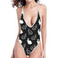 Black And White Rabbit Pattern Print One Piece High Cut Swimsuit