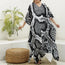 Black And White Snakeskin Print Silk V-Neck Kaftan Dress