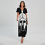 Black And White Spartan Helmet Print Short Sleeve Maxi Dress