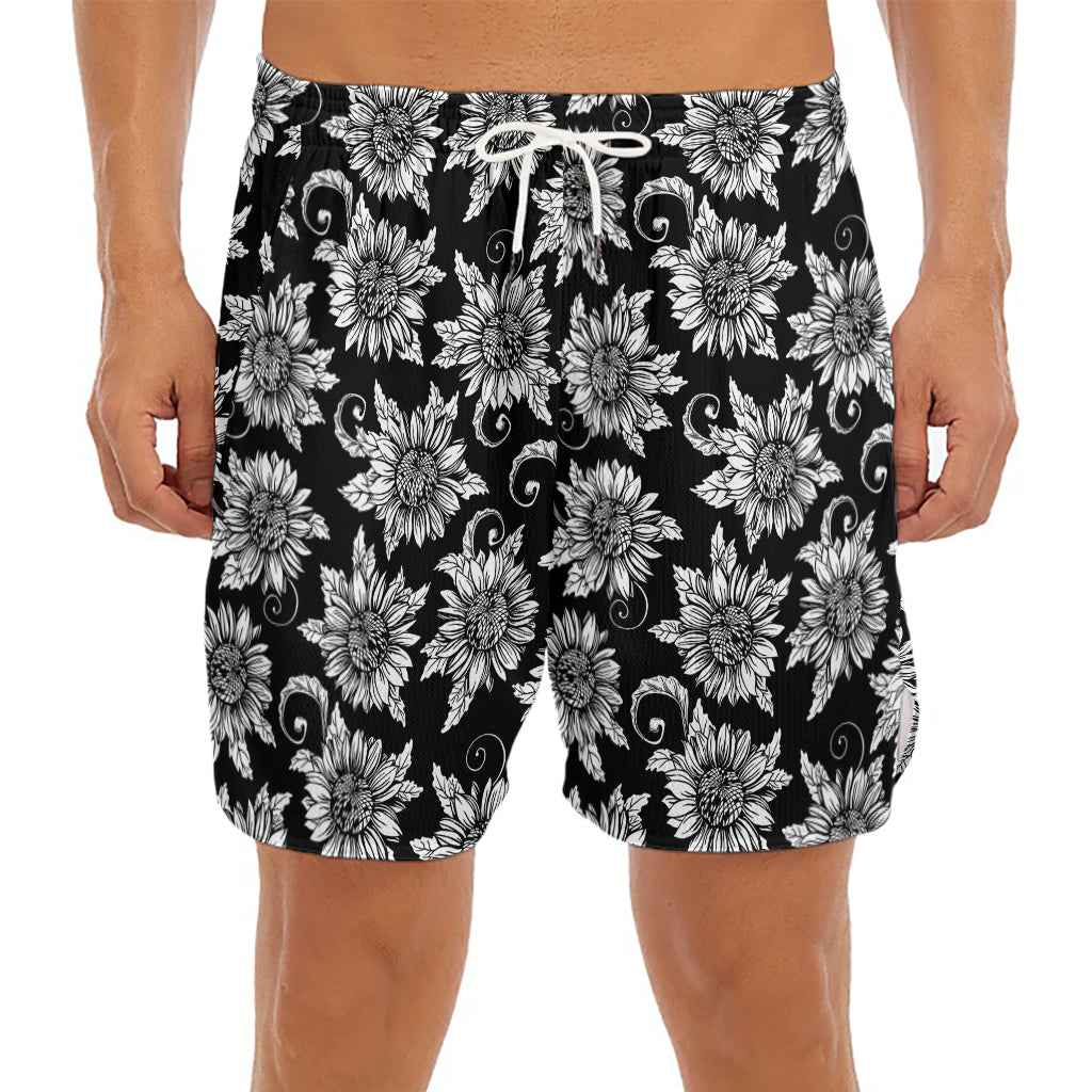 Are you looking for unique split running shorts? Check our Black And White Vintage Sunflower Print Men's Split Running Shorts on GearFrost. Our running shorts are handcrafted to the highest quality standards and made-to-order for you!