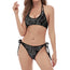 Black And White Mechanic Pattern Print Halter Scoop Tie Side Bikini