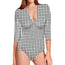 Black And White Windowpane Pattern Print Long Sleeve Swimsuit