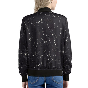 Make a bold statement with the sleek and stylish Black And White Zodiac Stars Print Women's Bomber Jacket. This women's bomber jacket combines a classic silhouette with modern design, offering the perfect mix of fashion and functionality. Whether you're layering it for a chilly day or adding a finishing touch to your outfit, this jacket is designed to keep you comfortable while elevating your style.