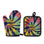 The Black Backed Spiral Tie Dye Print Oven Mitt And Pot Holder Set is a reliable kitchen essential designed to keep your hands and surfaces safe during everyday cooking. Made from durable polyester with an insulation cotton lining, this set offers comfort and practical heat resistance for common kitchen tasks.