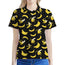 Black Cartoon Banana Pattern Print Women's Polo Shirt