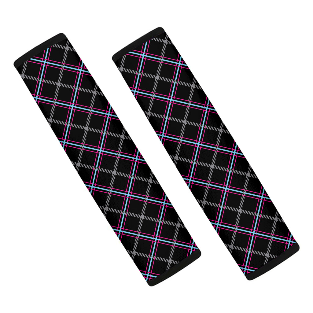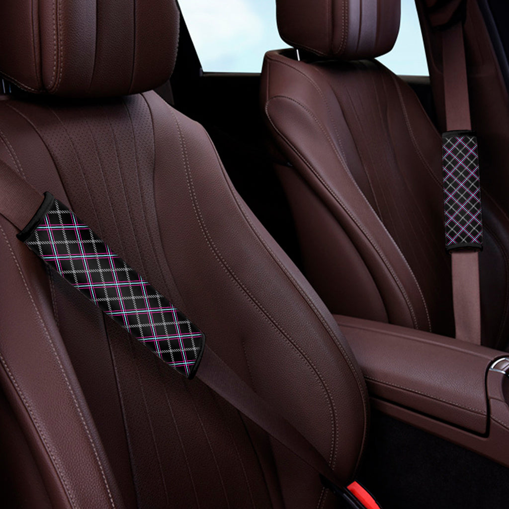 Are you looking for unique car seat belt covers? Check our Black Grey Blue And Pink Tartan Print Car Seat Belt Covers on GearFrost. Our car seat belt covers are handcrafted to the highest quality standards and made-to-order for you!