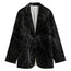 The button closure and side pockets add both style and practicality, providing secure storage for small essentials like keys or a phone. Whether you’re in a professional setting or enjoying a night out, these features make the blazer as functional as it is fashionable. The stitching, available in black or white, is thoughtfully matched to the design, ensuring a polished and cohesive look.