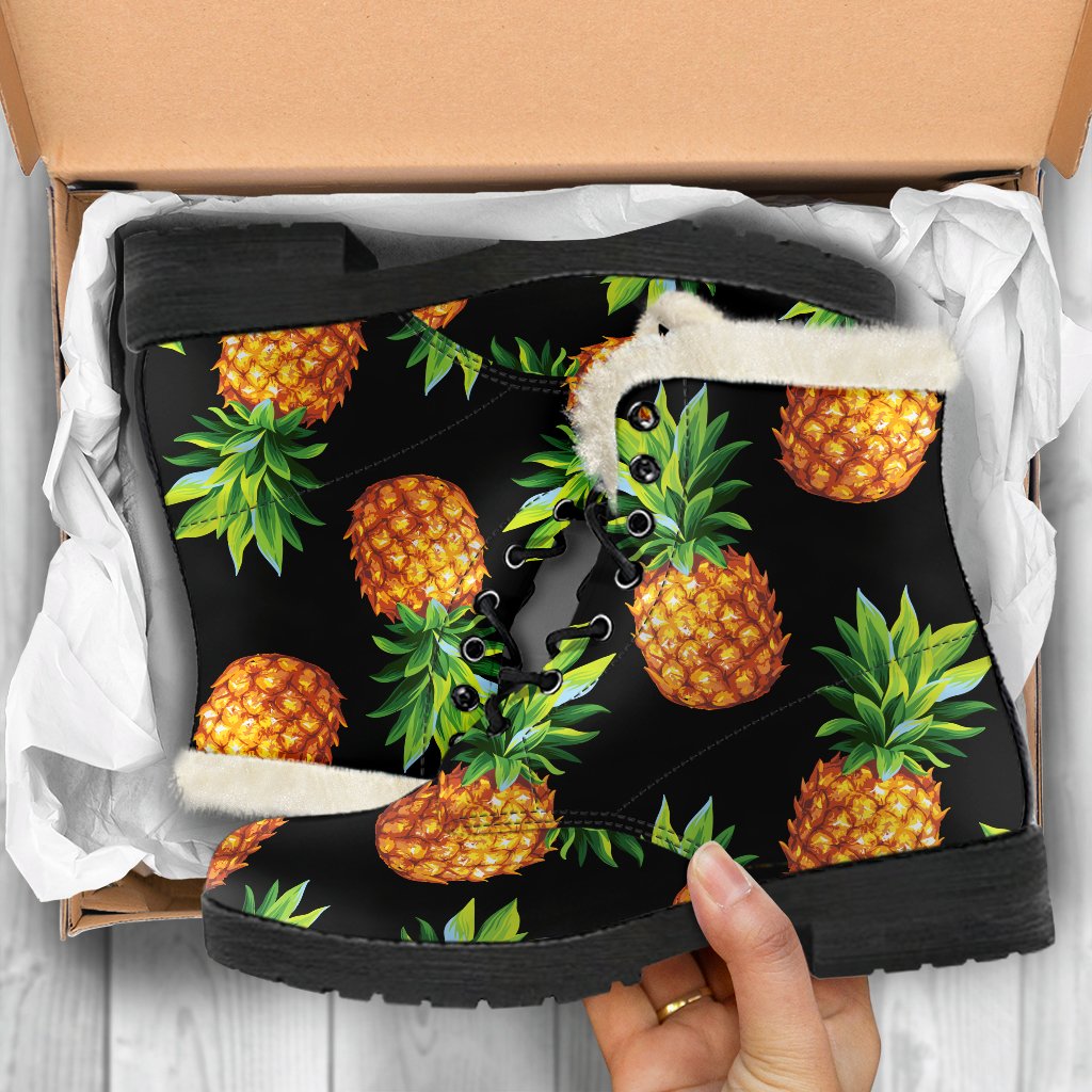 Combine cozy warmth with standout style in the versatile Black Pineapple Pattern Print Faux Fur Leather Boots. Designed to keep you comfortable without compromising on fashion, these faux fur leather boots are a must-have addition to your footwear collection. Whether you’re braving chilly weather or adding an edgy touch to your outfit, these boots offer the perfect mix of practicality and personality.