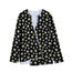 Black Plumeria Flower Pattern Print Long Sleeve Short Coat