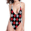 Black Red And Grey Argyle Pattern Print One Piece High Cut Swimsuit