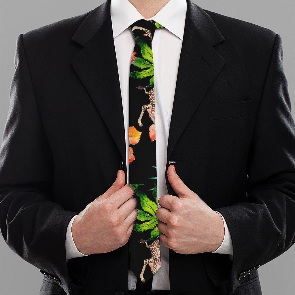 Are you looking for unique neckties? Check our Black Tropical Giraffe Pattern Print Necktie on GearFrost. Our ties are handcrafted to the highest quality standards and made-to-order for you!