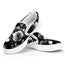 Black White Rose Floral Pattern Print White Slip On Sneakers