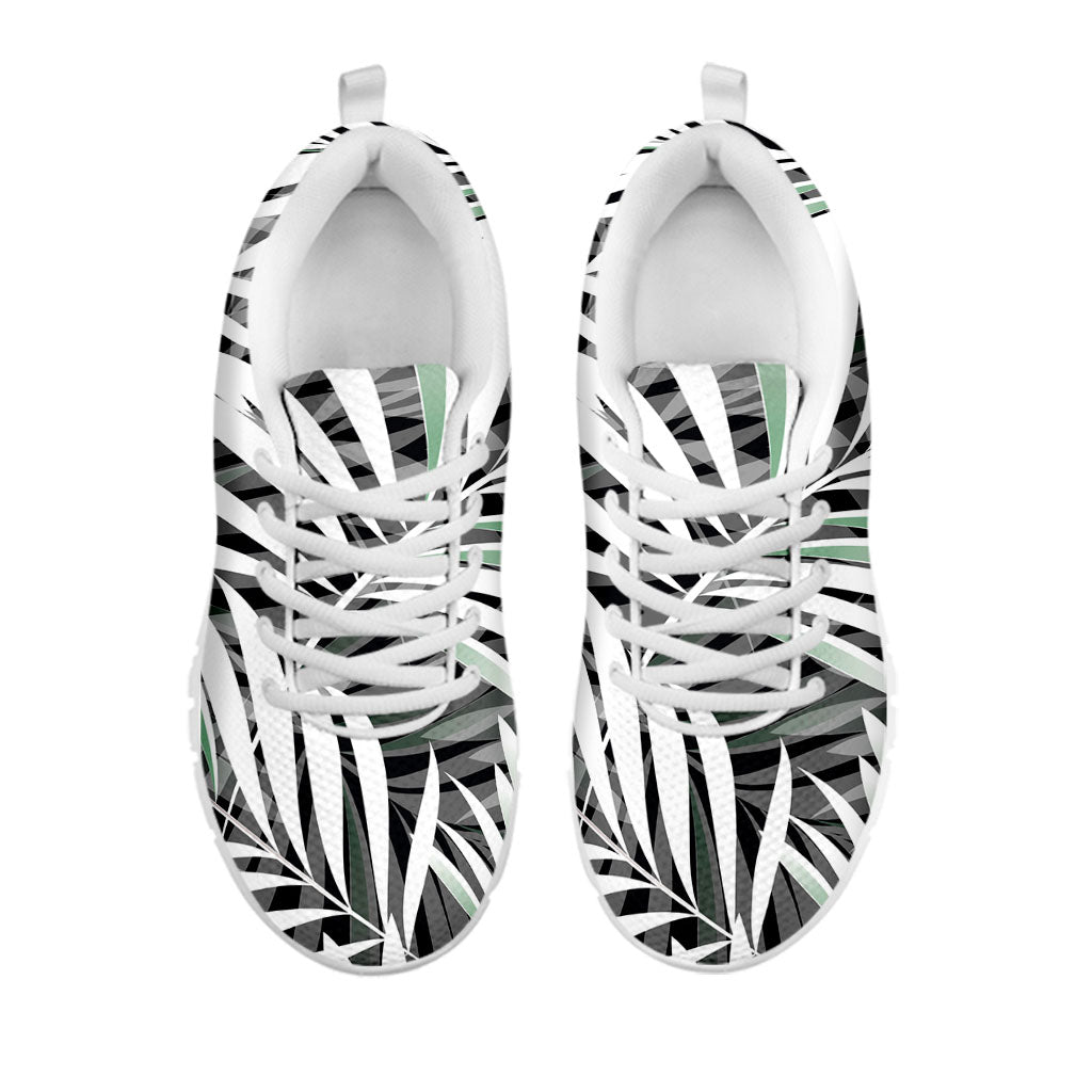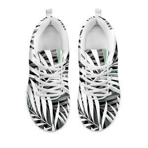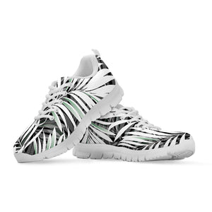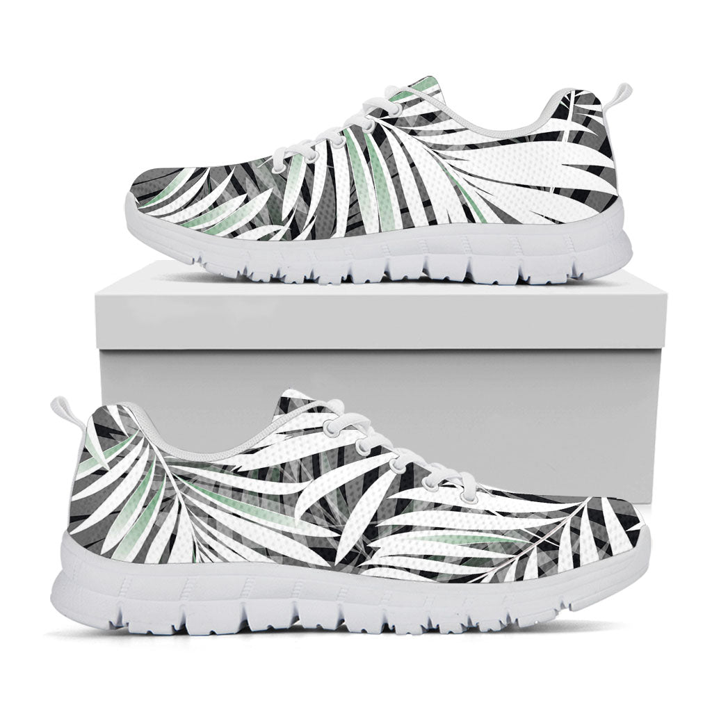 Black White Tropical Leaf Pattern Print White Running Shoes